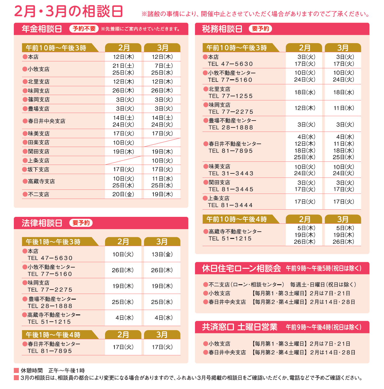 相談日は、変更になる場合がございます。