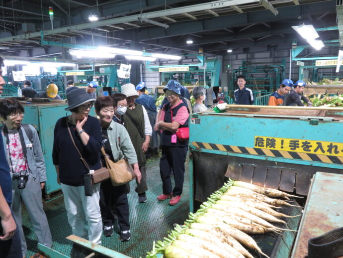 令和7年9月11日(木)~13日(土)に女性部合同旅行として「北海道 JAようていとの交流会の旅」を実施しました。昨年12月にJAようてい女性部が視察研修にみえたので、今度は当女性部が視察に行きたいと企画しました。JAの大根と人参の選果施設の見学と本所にて女性部手作りの地元メニューでもてなして頂き、最初は緊張気味の両女性部も食事をしながら和やかに親睦を深めました。