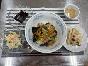 1日の1/2の野菜が採れる中華献立をとなっており、デザートが付いて、調理時間も短めで美味しくて満足できる献立を学びました。