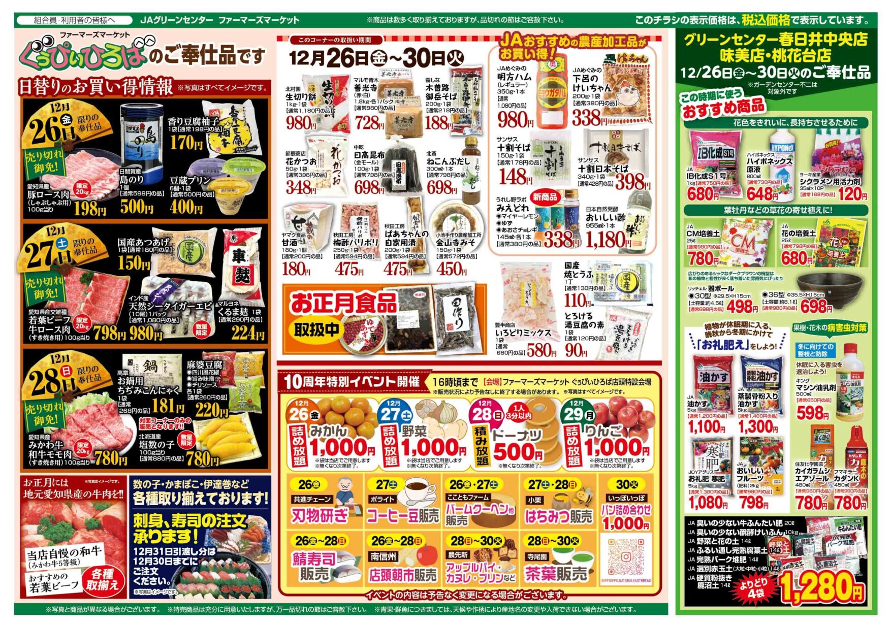 〈12/26~30〉産直4施設合同:歳末感謝セールのお知らせ