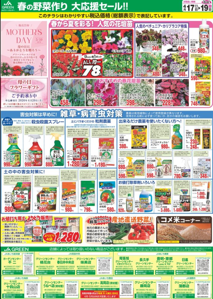 4/17(金)~4/19(日)の3日間、GC3店舗、ガーデンセンター不二にて春の野菜作り大応援セールが開催されます。