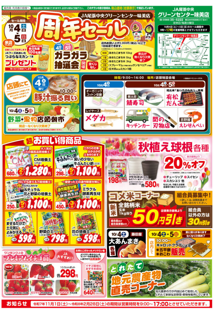 〈10/4~5〉グリーンセンター味美店「周年セール」