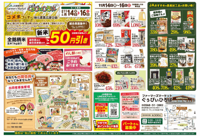 🎄新米・全銘柄米 玄米1kg当り50円引き(組合員限定)