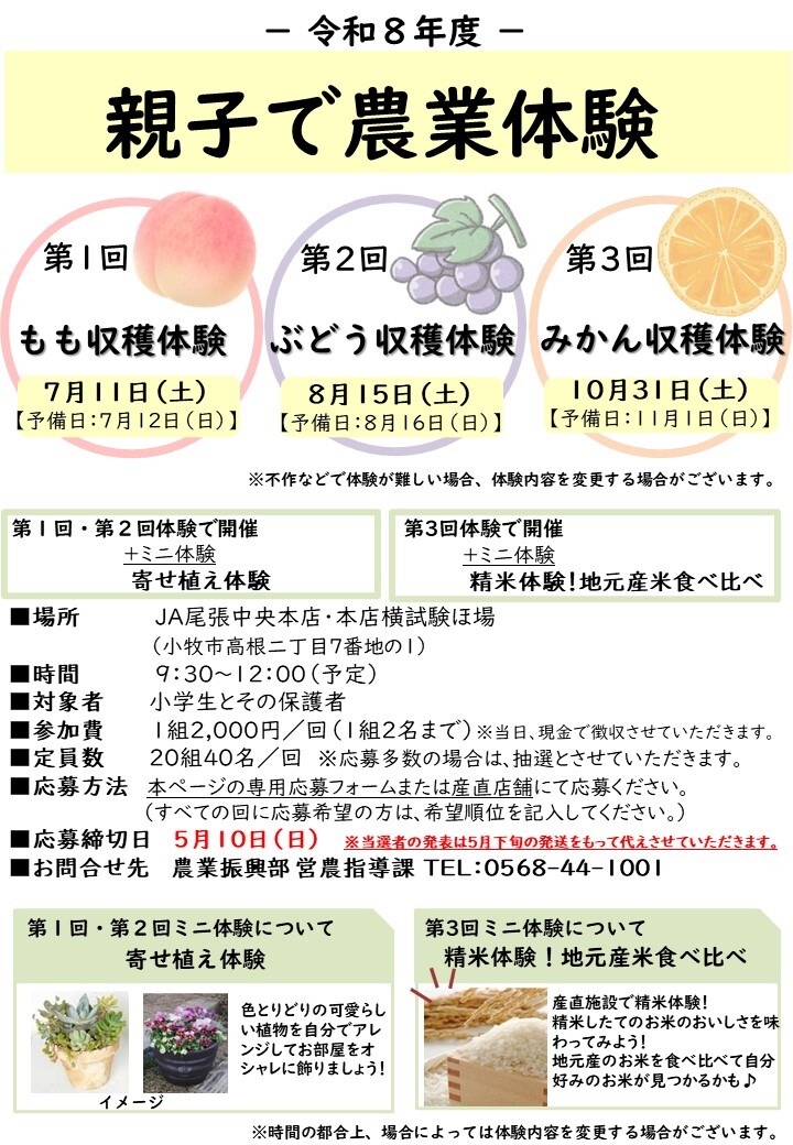 令和8年度『親子で農業体験』の参加者を募集中です。