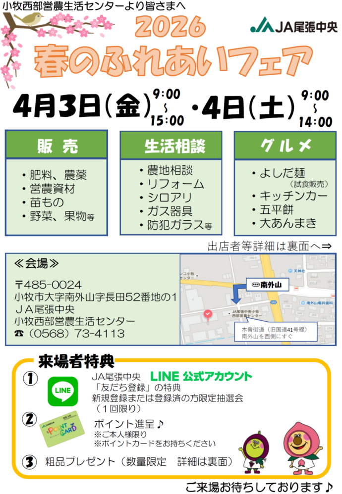 4月3日(金)・4日(土)の2日間、小牧西部営農生活センターでは春のふれあいを開催!