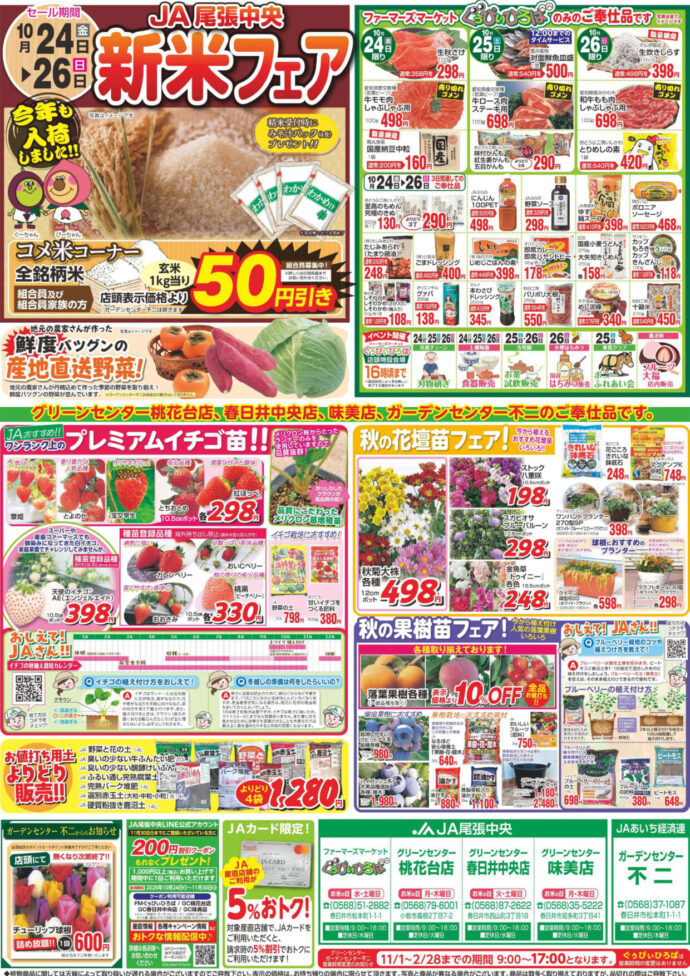 〈10/24~26〉新米フェア・秋の園芸シーズン大応援セール