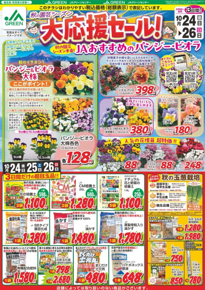 🌼 園芸用品各種・パンジー&ビオラを特価販売!
