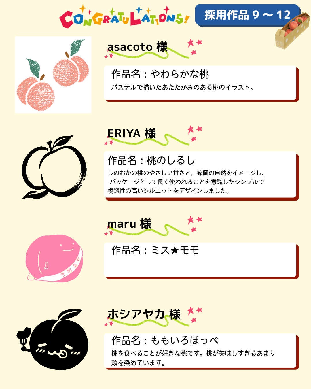 【結果発表】「しのおかの桃」 新パッケージ・シルエットアート採用作品決定!