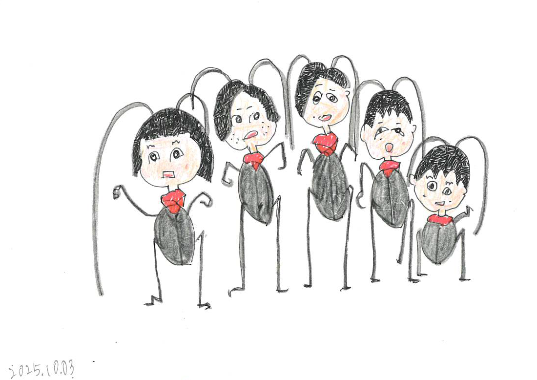 我々人間が、標本のように昆虫を見ると、翅の見える方が前になりますが、昆虫たちからすると、翅のある方が背中ですね。「クビアカツヤカミキリ」も、何気に、首が赤いとされていますが、本人さんからは「赤いのは首ではありません」なんて文句が出そうです。標本を作るときに、虫ピンを右に挿すのは、虫たちから見て、心臓が左にあるからでしょうか。