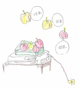 予め、重さの階級をS・M・L、15・18・20玉などと入力して、1個ずつ取り出すと、階級を声で教えてくれます。商品名「ピーチク・パーチク」「分太Ⅱ」があります。