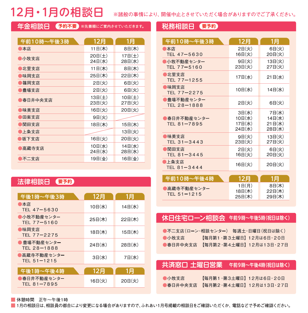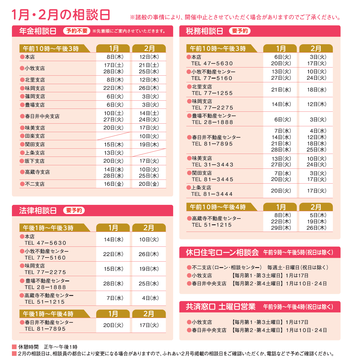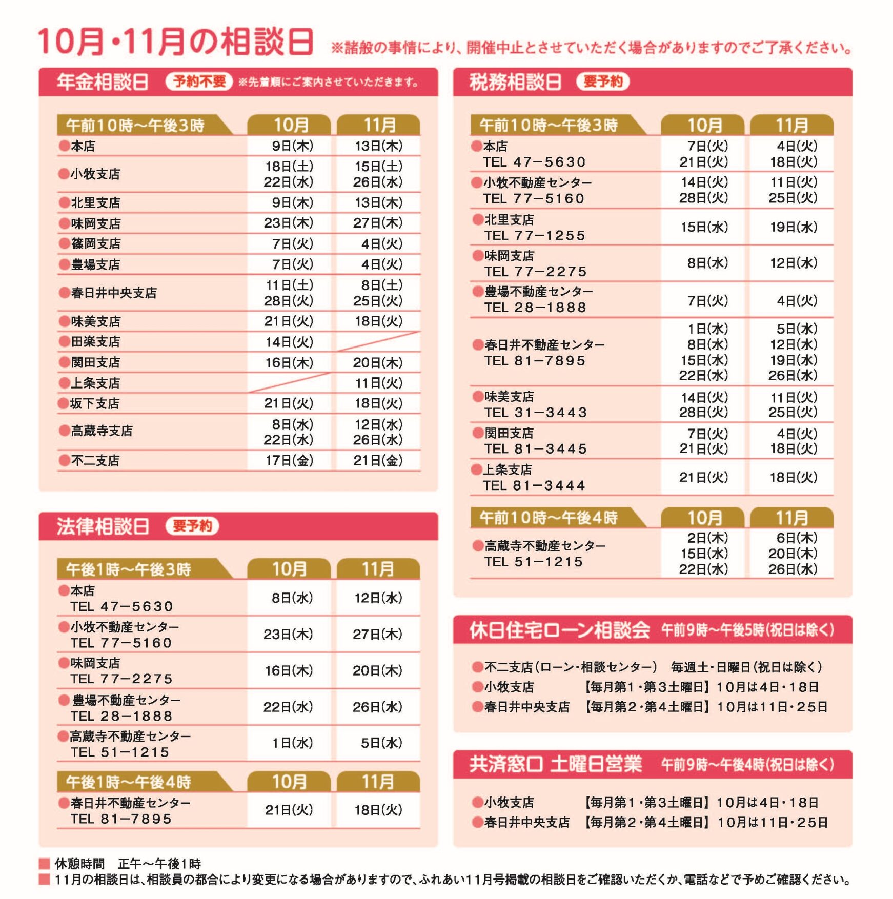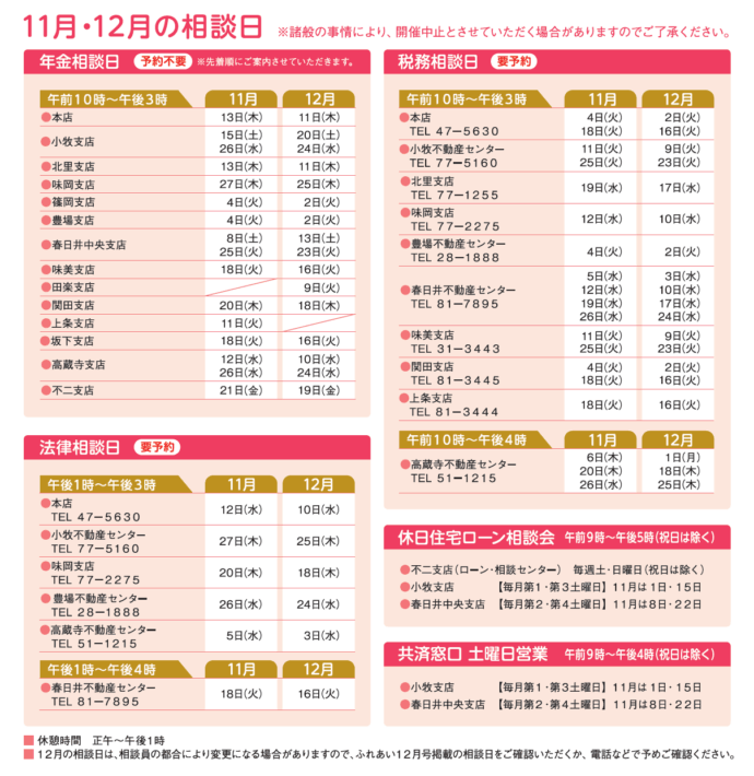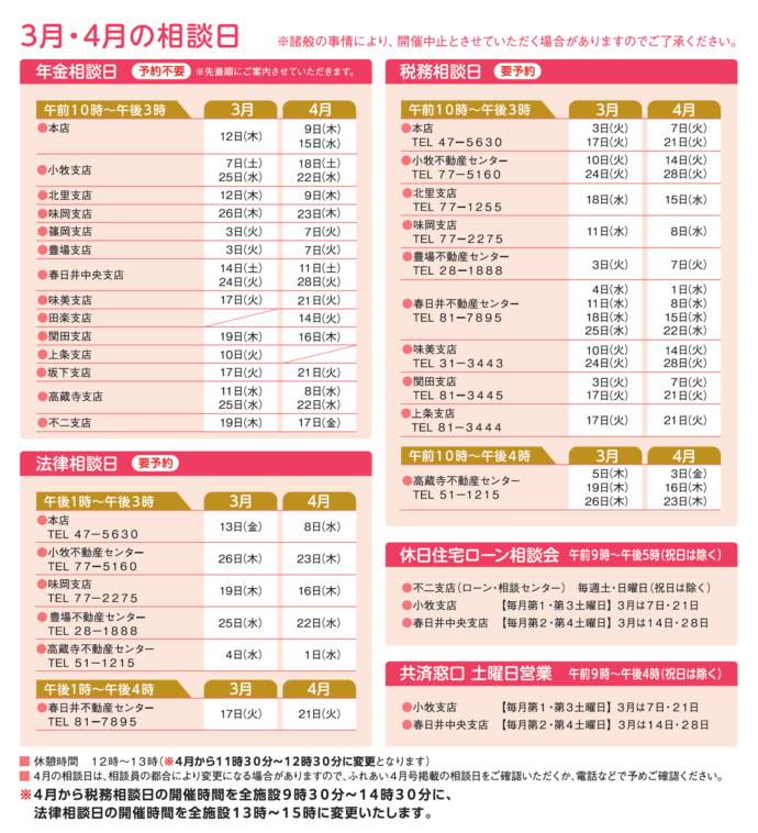 相談日は、変更になる場合がございます。