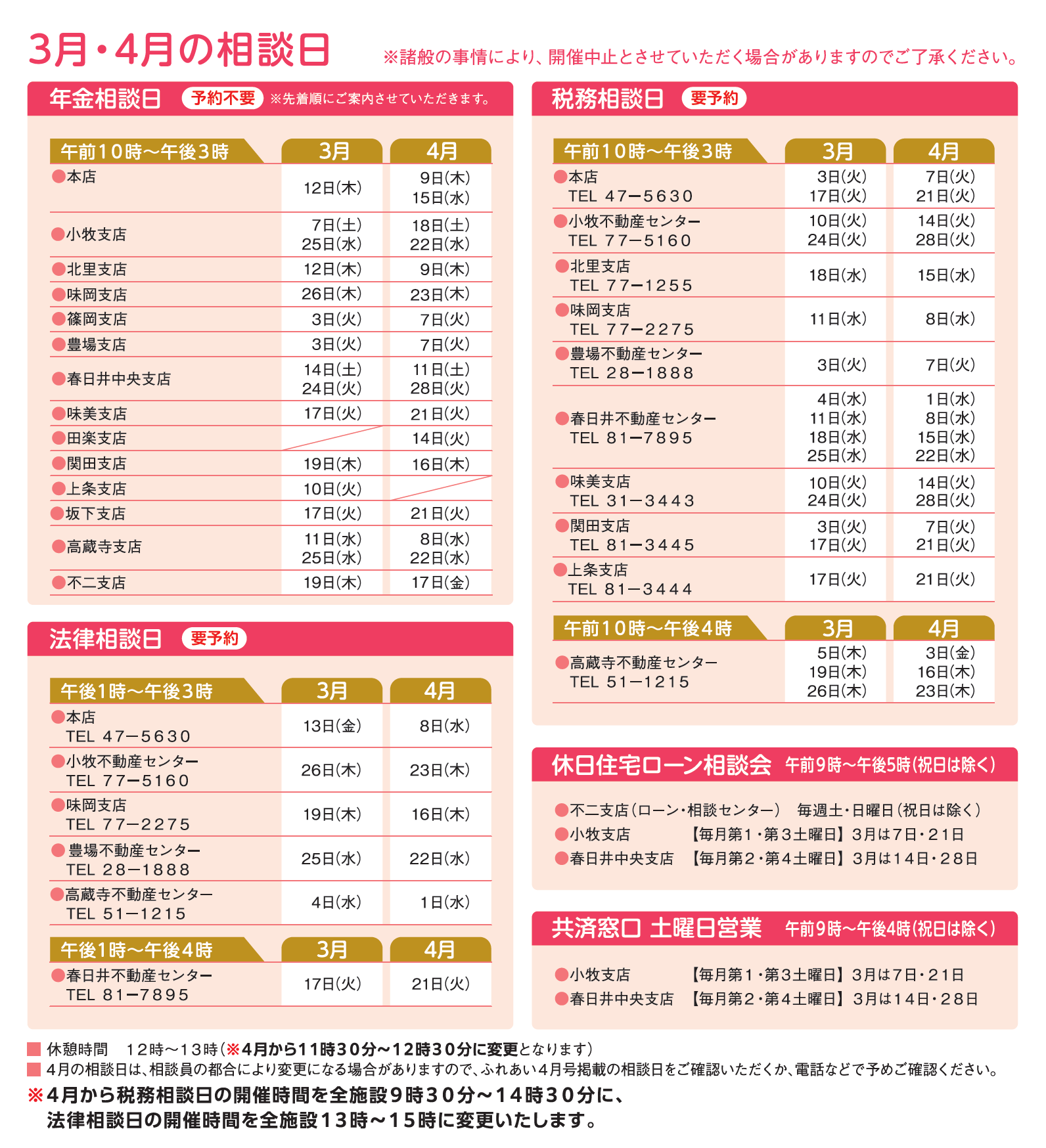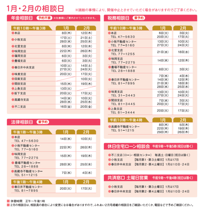 相談はご来店順に案内をさせていただきます。予約制の支店は、あらかじめお電話でご予約の上、ご来店ください。