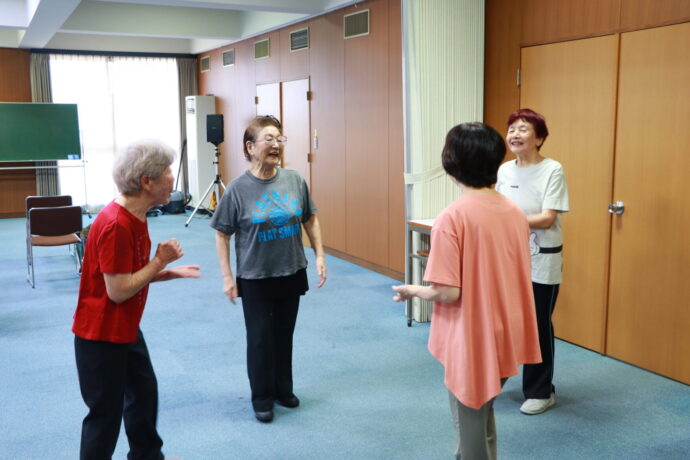 JA愛知厚生連の保健師 長尾さんを講師に招き、部員は日々の運動がアルツハイマー型認知症の予防にどんな効果を与えているかを学び、コグニサイズと呼ばれるエクササイズに挑戦しました。