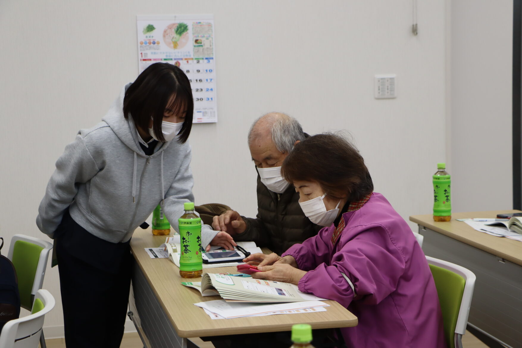 高蔵寺支店では天気アプリ「ウェザーニュース」と乗換案内アプリ「ジョルダン」を便利に使うための講座が行われました。参加者は「スマホですぐに調べることができると、出先で不安になることがなくなって安心です。知らない機能もあって勉強になりました」と話しました。