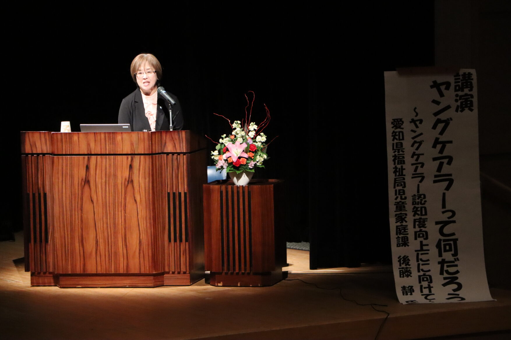 部員は、愛知県福祉局児童家庭課の後藤静さんを講師に招き、社会問題として度々メディアなどで取り上げられている「ヤングケアラー」について学びました。