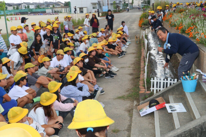 不二小学校は7日、営農指導課協力のもとで5年生児童による「ダイコンの植え付け体験」を行い、児童150名が参加しました。