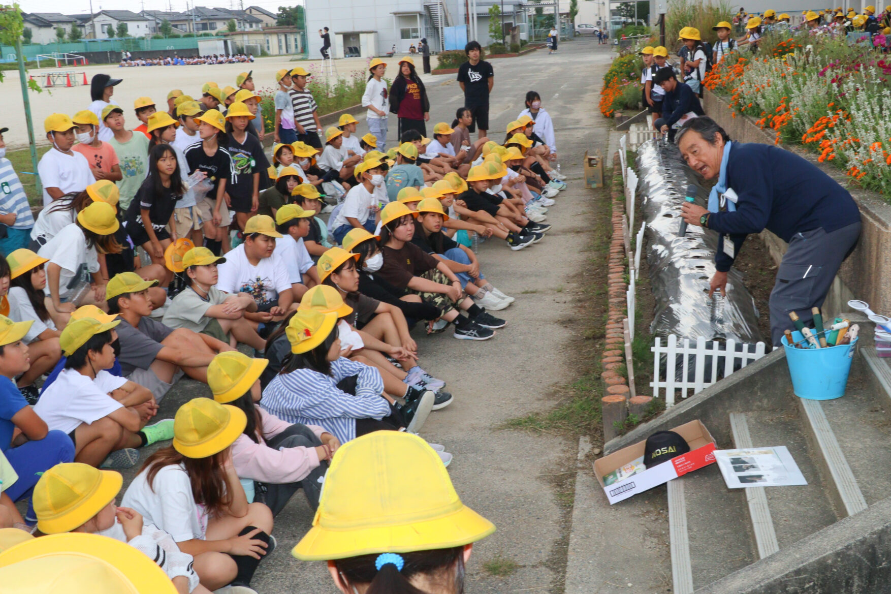 新たに始まる秋冬野菜の栽培では、全クラスがダイコンに品目を統一して取組み、一人ひとりが自分の播き穴を担当。植え付けの前には、磯部営農技術指導員から、種まきのポイントや覆土の方法などについてアドバイスが行われました。