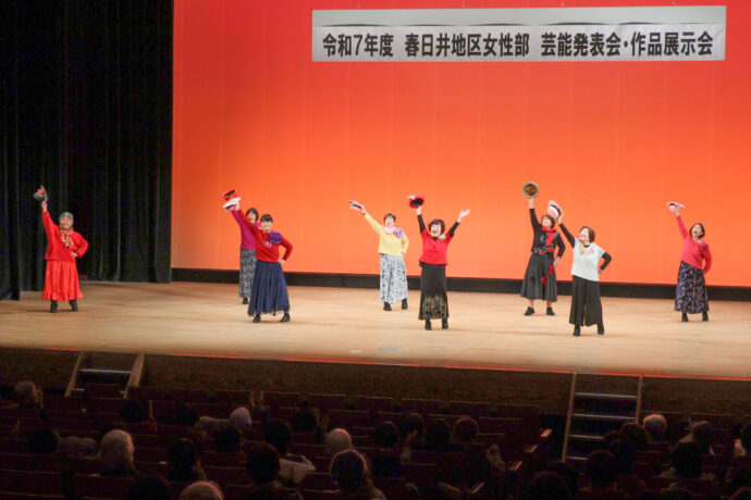 春日井地区女性部は19日、春日井市民会館で「令和7年度 芸能発表会・作品展示会」を開き、6組89名が発表を行いました。この取組みは女性部文化教室の日頃の活動の成果を発表する場として企画され、観覧席には部員の知人や地域住民ら117人が来場。出演者を温かく見守る、和やかな交流の場となりました。
