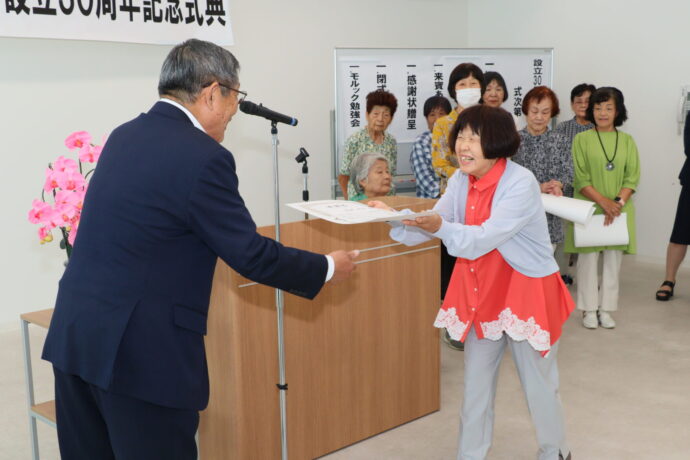 假屋会長は冒頭のあいさつで「30年の月日は早いもので、世の中は様々に変化してまいりました。しかしながら私たち虹の会の信念は変わらず、地域のみんなで助け合いながら、楽しく安心して暮らせる活動を続けていきたいと思います。『また来るね』と言ってもらう言葉が一番嬉しいです。これからも頑張って行きましょう」と話しました。