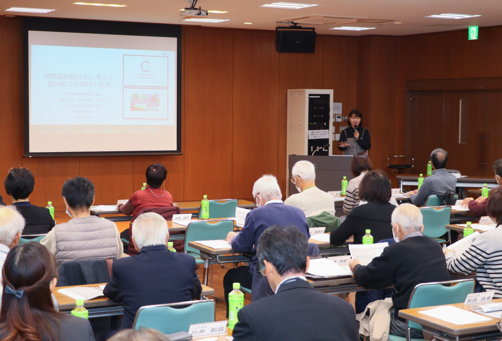阿高さんは講義の中で「国際社会において、協同組合の優位性は高く評価されています。支店単位での協同活動の一環として、ぜひ楽しみながら継続してください」などと参加者に語りかけました。