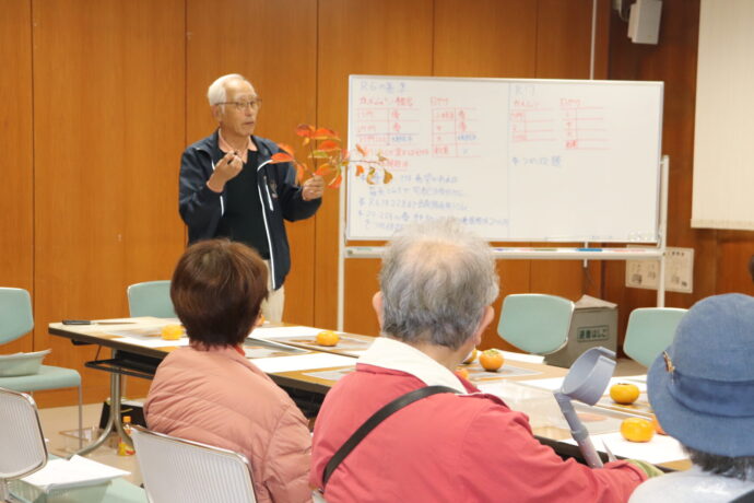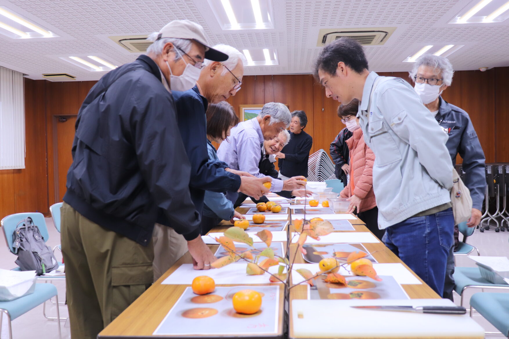柿部会は10月31日、小牧東部営農生活センターで目揃え会を開き、部会員14名が参加しました。同部会では出荷基準を決めて安定した品質の「富有柿」の出荷を行っています。