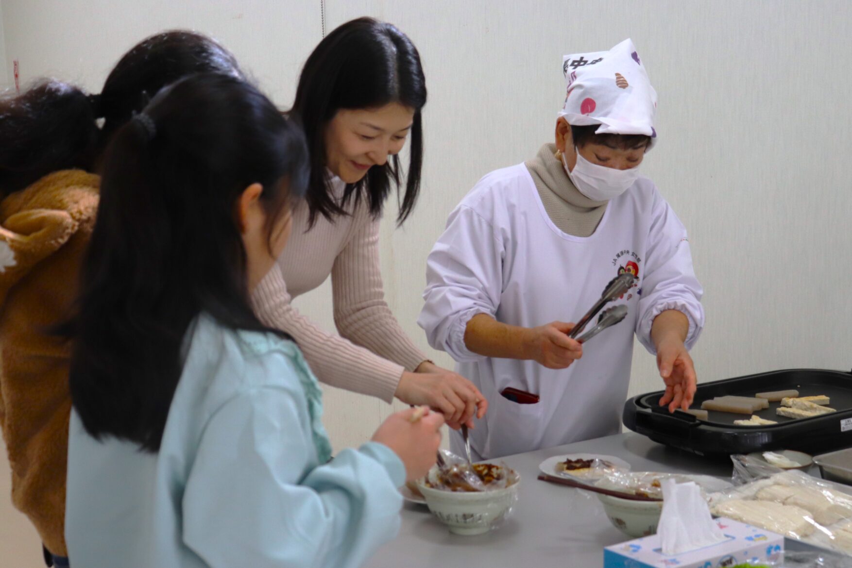 昨年から始まったこの取組みは、女性部員が手作りした定食を地域住民に無料で提供するもので、今年は開催日を2日に拡大。両日で計74名が参加し、昨年度を大きく上回る参加者で大いににぎわいました。