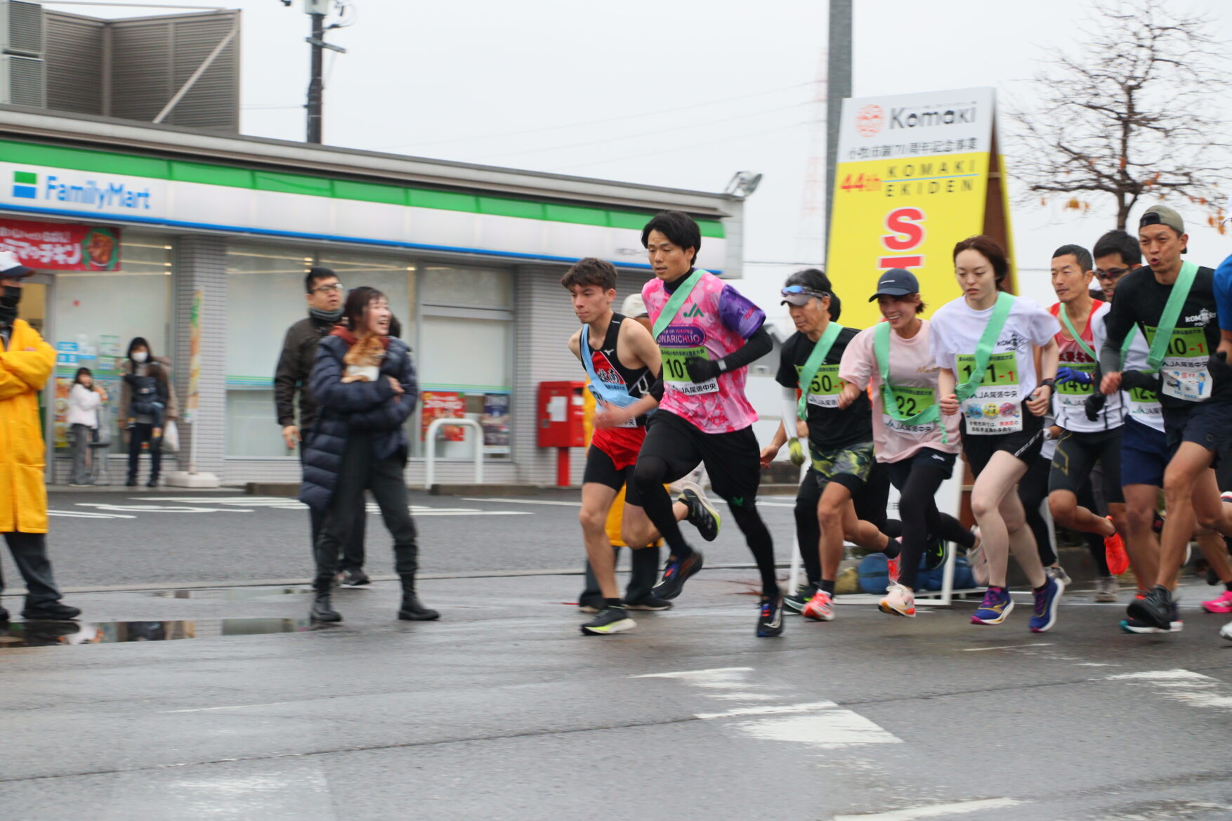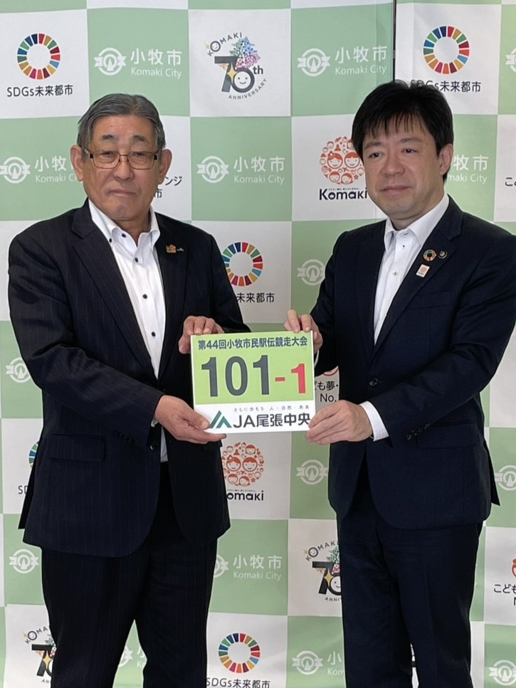 開会式で山下史守朗小牧市長は「市制70周年という記念すべき年に、多くのランナーが集い、タスキをつなぐ光景は大変喜ばしいです」と挨拶。スタートの号砲を務めました。