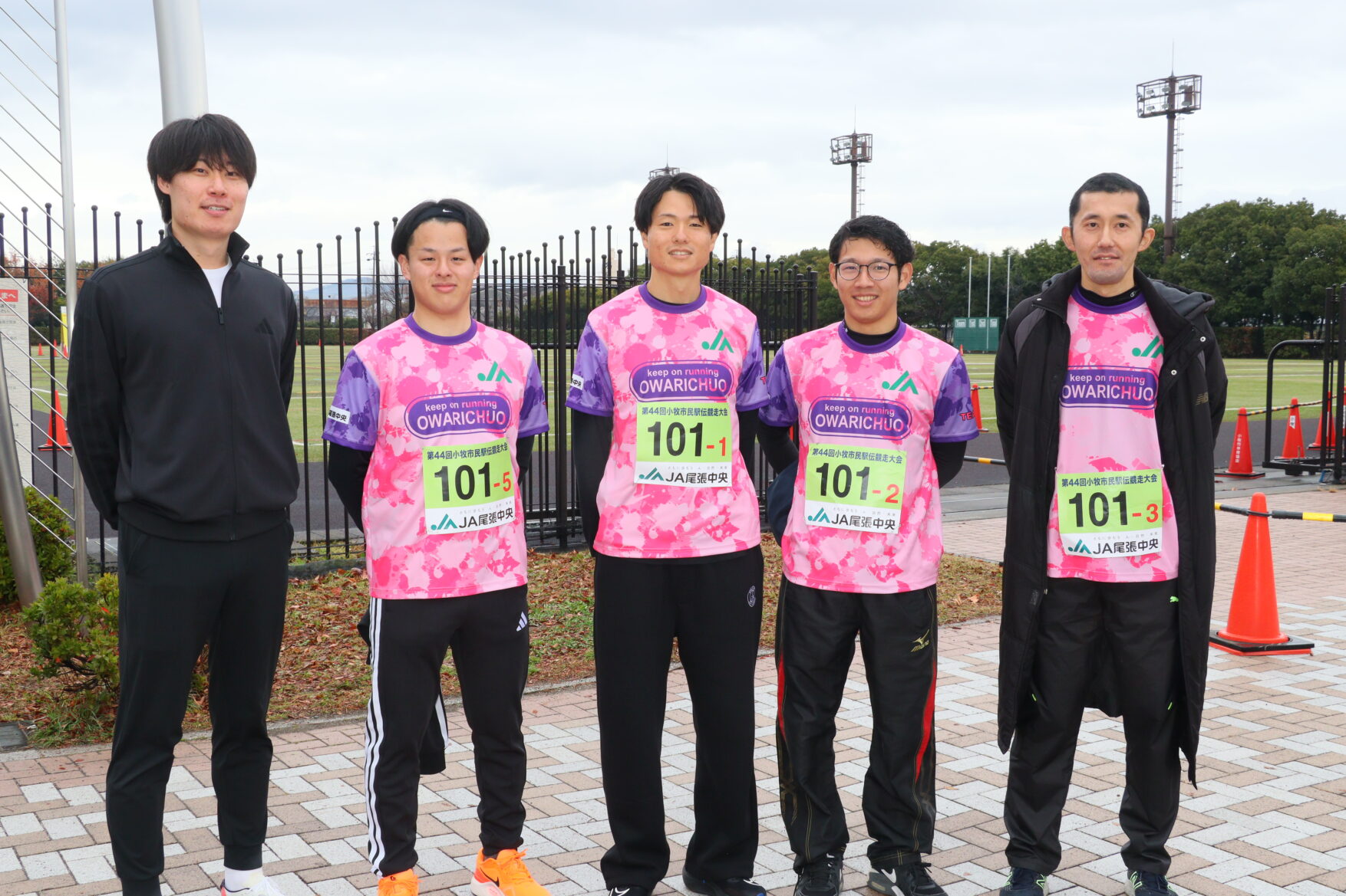 コースは前回より300m延長され総距離22.1km、パークアリーナ小牧を発着点に、起伏の激しい東部丘陵地域(桃花台方面)を周回する設定です。当JAチームはベテランから若手へとタスキをリレーすると、最終5区のアンカーは今年入組した新人職員が担当。沿道の声援を背に、最後まで力走しました。