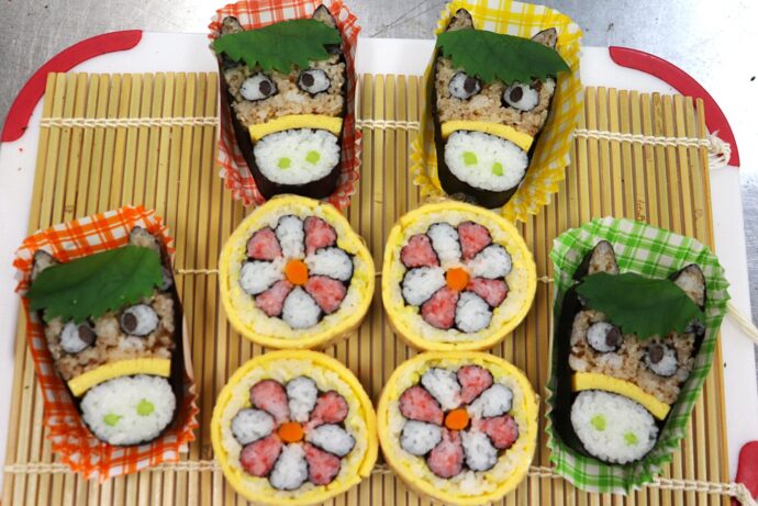 講師に川澄飾り巻き寿司協会の牛田純子さんを招き、紅白の花と来年の干支にちなんだ「馬」の飾り巻き寿司に挑戦しました。