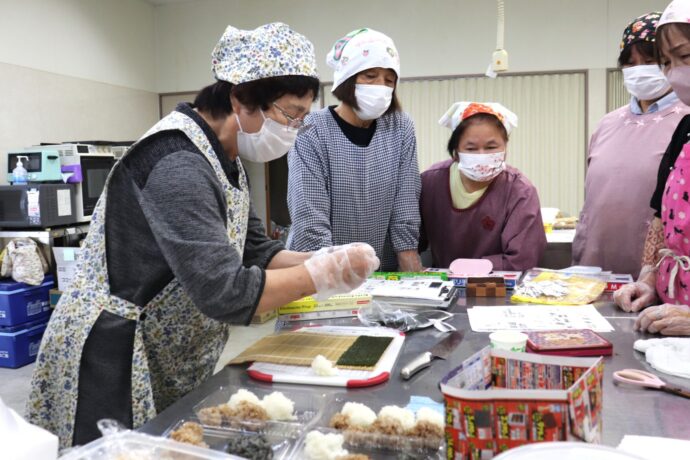女性部篠岡支部は16日、旧陶支店料理教室で「飾り巻き寿司」に挑戦し、部員6名が参加しました。