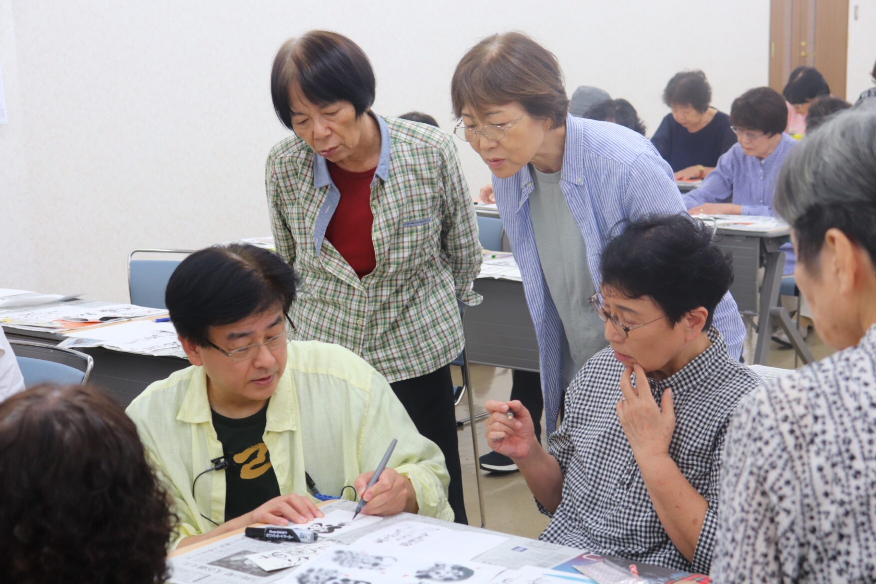 高蔵寺地区女性学級は18日、高蔵寺レインボーセンターで女性学級「己書」を開催し、部員49名が参加しました。