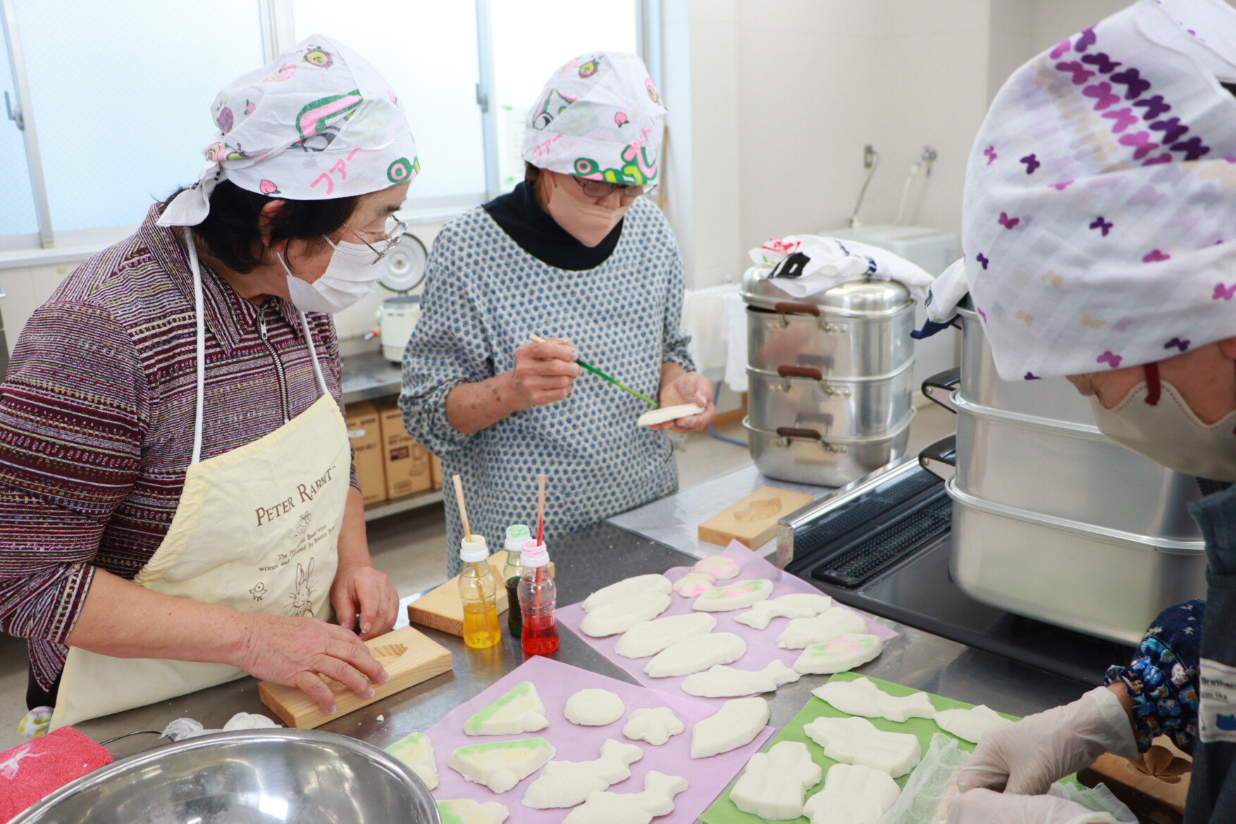 高蔵寺地区女性部は2月27日、高蔵寺レインボーセンターで「おこしもの作り」を行い、部員33名が参加しました。