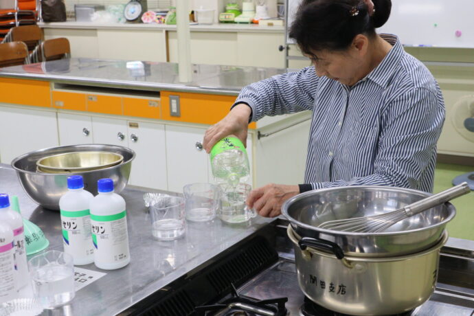 参加した部員は「毎年作っていますが、やっぱりヘチマの香りに癒やされます。肌になじむ感じがやさしくてとても気に入っています」と話しました。