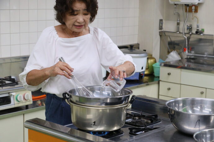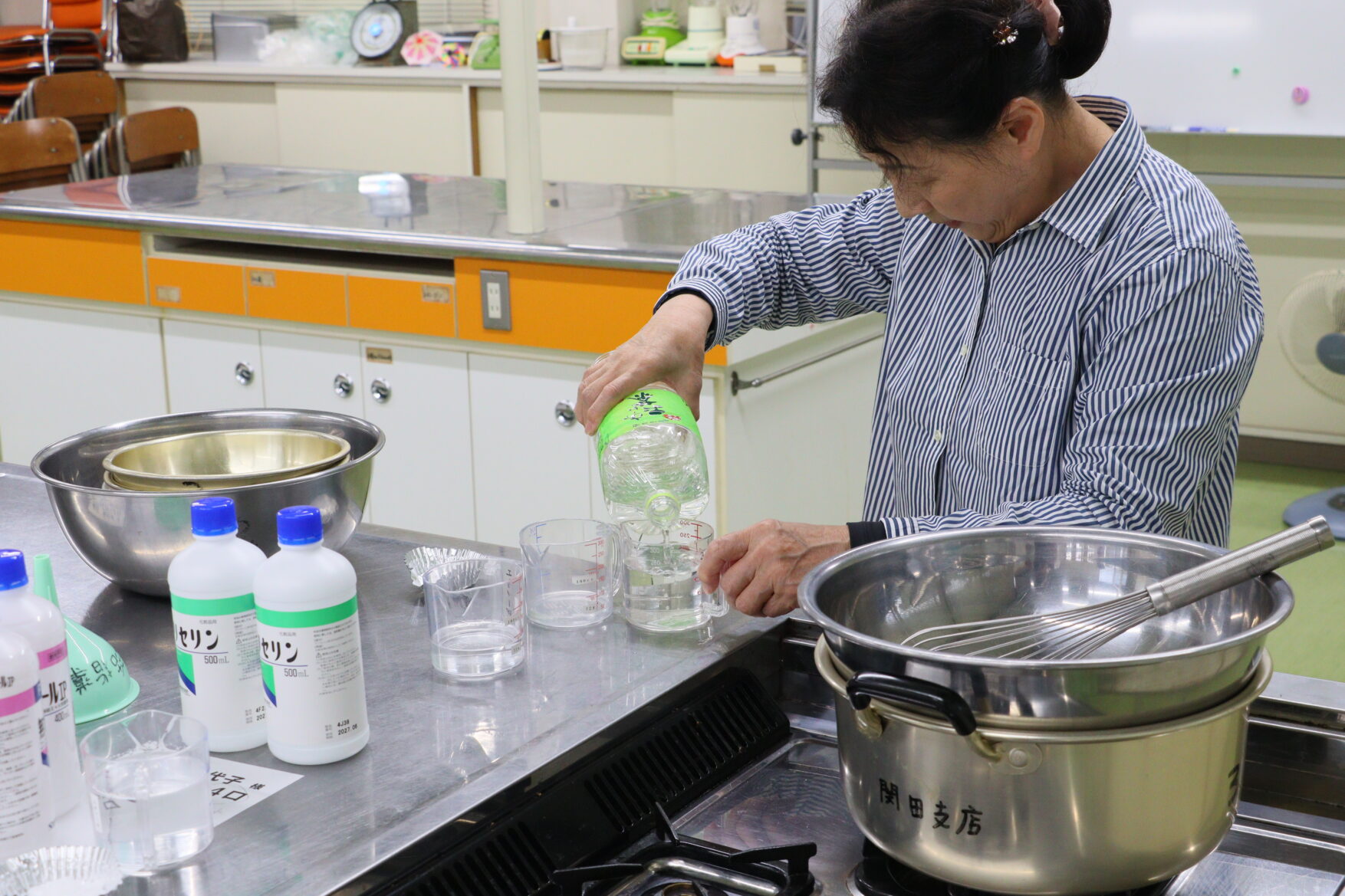 女性部関田支部では16日、毎年恒例のヘチマ化粧水とベルツ水づくりを楽しみました。