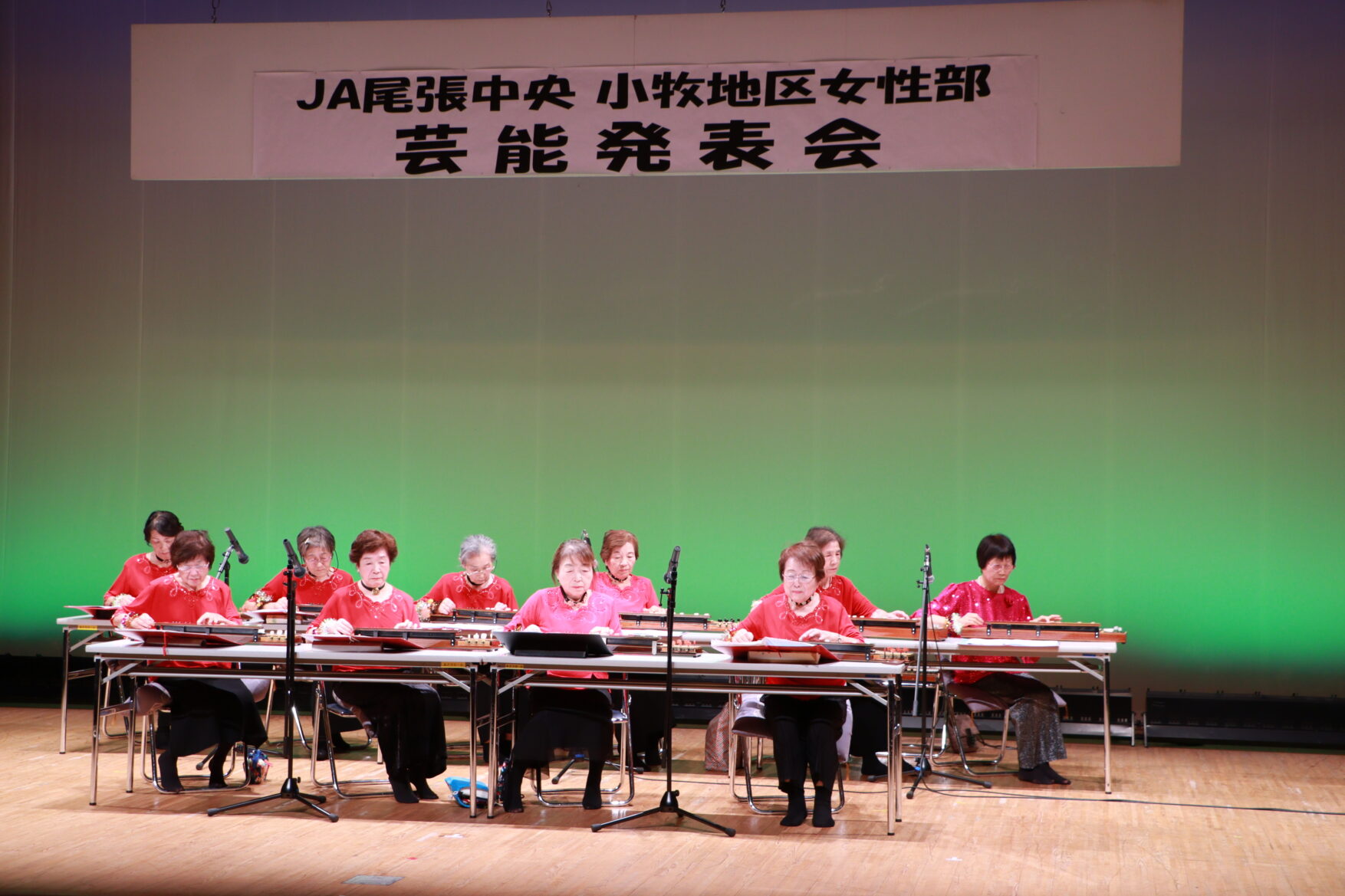 小牧地区女性部は6日、あさひホールで「小牧地区芸能発表会」を開催しました。女性部では、踊りや体操、編み物など様々な文化教室を開講しています。芸能発表会では、大正琴や健康体操、フラダンスなど計16組の文化教室が参加し、舞台で日頃の練習の成果を披露しました。作品展は4日~6日の3日間開催され、絵手紙や習字、手芸など20組の文化教室が参加し、自身の作品を展示しました。