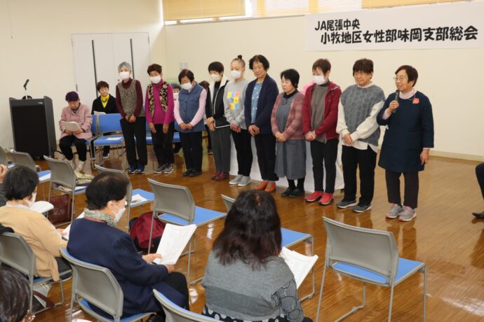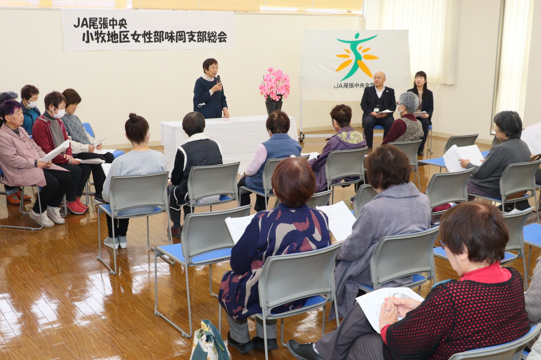 小牧地区女性部味岡支部は6日、味岡支店会議室で令和7年度通常総会を開き、部員ら30名が参加しました。