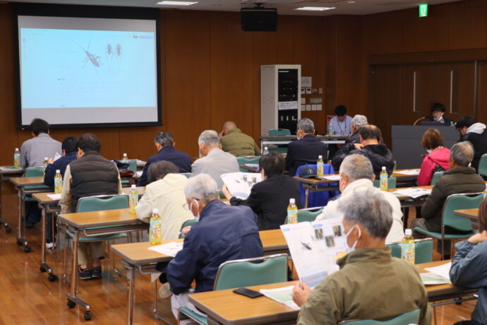 また、近年の深刻な課題である病害虫対策として、尾張農林水産事務所農業改良普及課の山本大地技師を招き、「クビアカツヤカミキリ対策」と題した研修を実施。伊藤真二部会長は挨拶で「他県の圃場(ほじょう)では、たった1匹見つかっただけで、3年後にはすべての木を伐採せざるを得なくなったケースもあります。今年は特に用心し、徹底した防除に取組んでいきましょう」と害虫の脅威について呼びかけました。