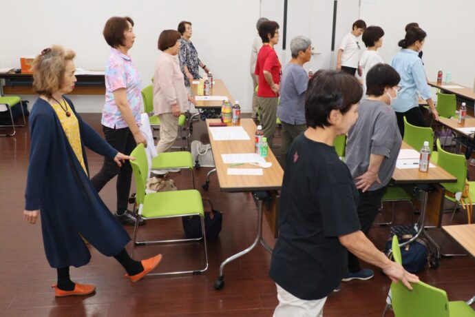 部員たちは、運動との付き合い方や、歩き方の姿勢などを学んだほか、その場で体を動かすなどしてその効果を体感しました。
