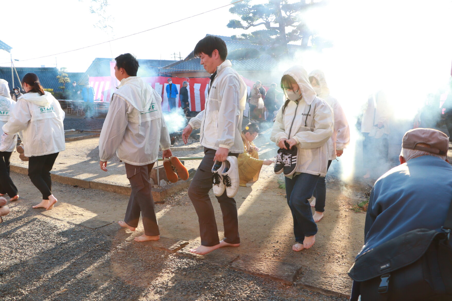 その後、来場者は、無病息災や家内安全を願って火渡りを行いました。