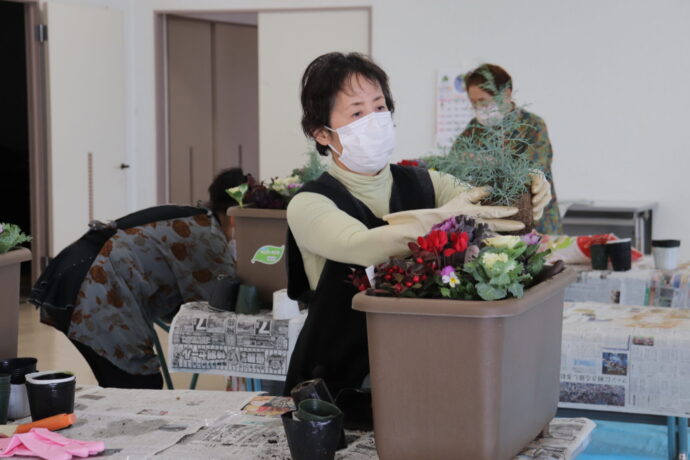 管内4地区で寄せ植え教室 色鮮やかな花々で新年を迎える準備