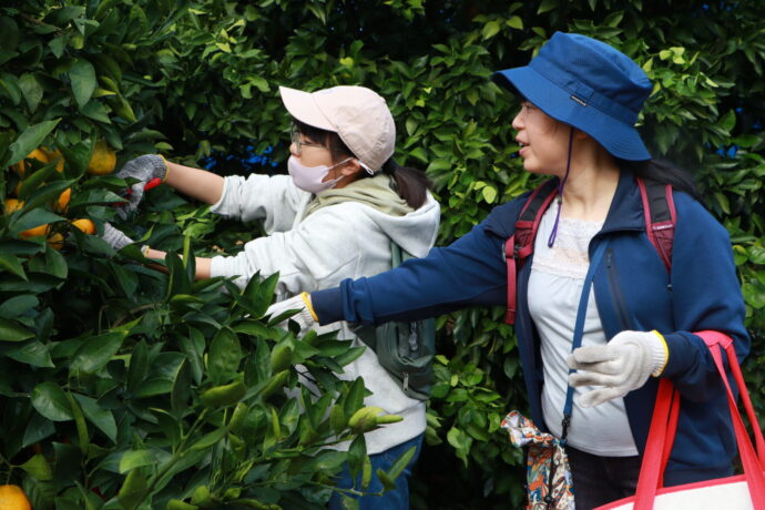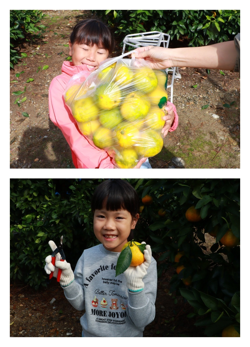 参加者は同課職員サポートのもと、2度切りと呼ばれる収穫方法で、日南みかんを収穫。参加者は「どれが美味しいかなと親子で話しながら収穫を楽しみました。こんなにたくさん持ち帰れるとは思ってなかったのでとっても嬉しいです」と声を弾ませました。