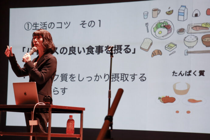 講師を務めた認知症専門リハビリルームmaman代表の丸田歩さんは「老化に伴う心と体の変化」「認知症の基礎と健康管理」「認知症予防のコツ」などについて話し、「認知症の一番の原因は加齢と言われ、高齢者全員にリスクがあります。認知機能の低下を感じたら早めに受診をし、放置しないことが大切です」と呼びかけました。これまでに500人以上の高齢者の認知症に向き合ってきた丸田さんの話を参加した会員は頷きながら真剣に聞きました。