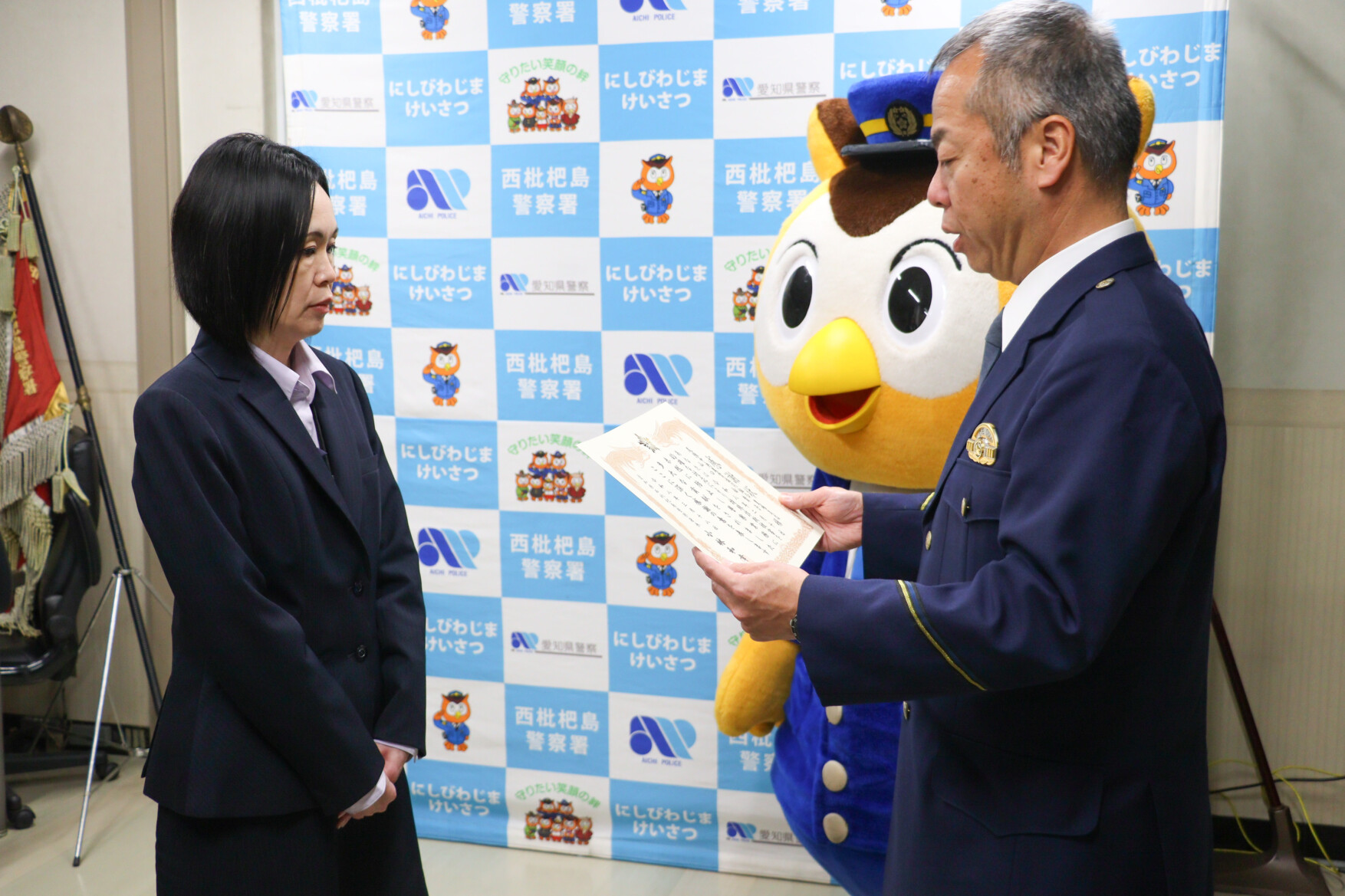 豊場支店が特殊詐欺被害を未然に防止 西枇杷島警察署より感謝状