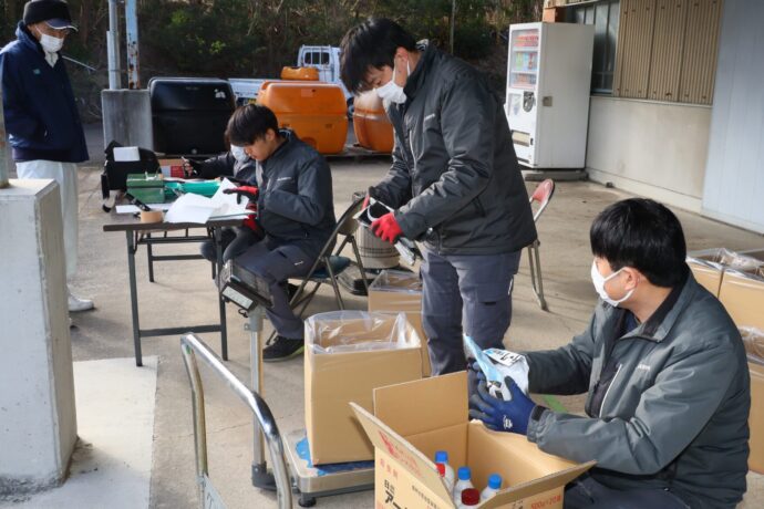 8日、小牧東部営農生活センターで実施された回収には13名の生産者が来場。会場では、職員が事前の申込内容との突き合わせや重量計測を行い、使用期限が切れた農薬や古くなったプラ袋などを種類ごとに分別しました。