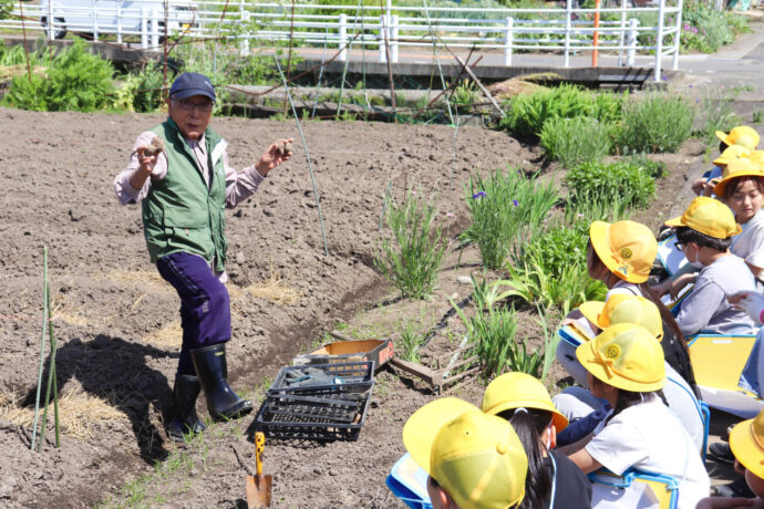 中村宣夫ふれあい委員長は「これから秋にかけて少しずつ大きくなっていくので、生長の様子をよく観察しながら収穫を楽しみにしてください」と児童たちに呼びかけました。