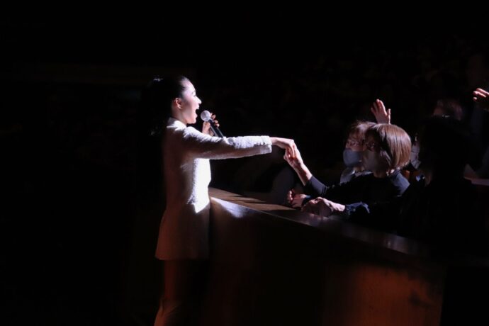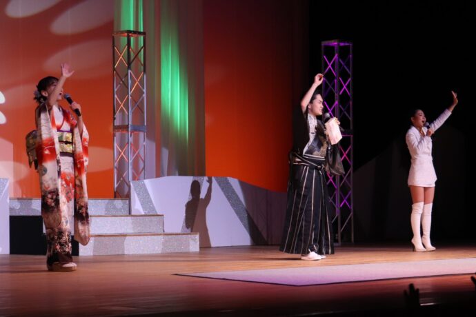 細川たかしさんの門下生であり、歌手として活躍する社このみさん、彩青さん、田中あいみさん、そして落語家の春風亭柳好さんの4名が出演し、歌や笑いのステージで会場を盛り上げました。