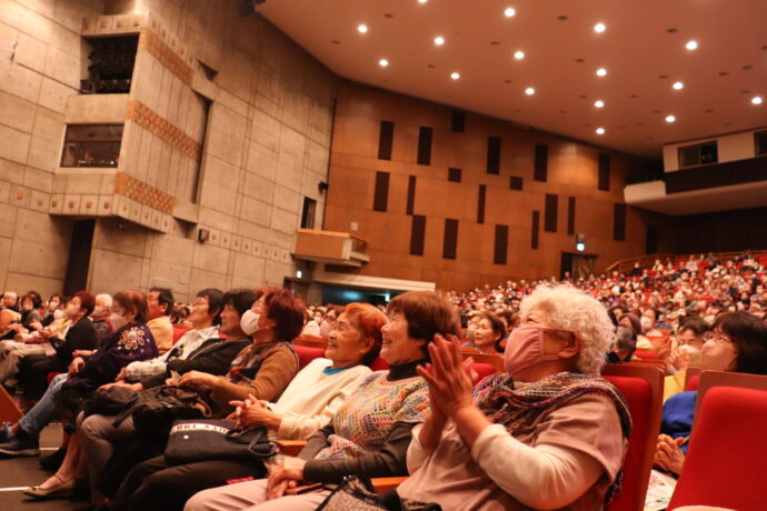 会員らは歌に合わせて手拍子を打ち、小話に笑い声を上げるなど、終始和やかな雰囲気に包まれました。