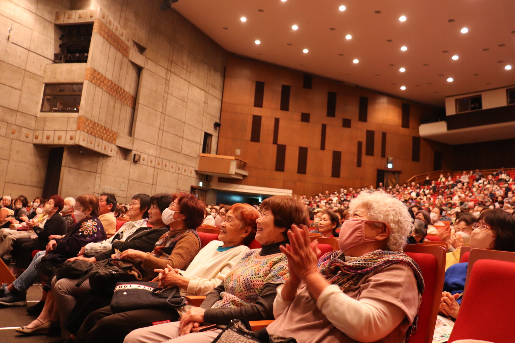 会員らは歌に合わせて手拍子を打ち、小話に笑い声を上げるなど、終始和やかな雰囲気に包まれました。