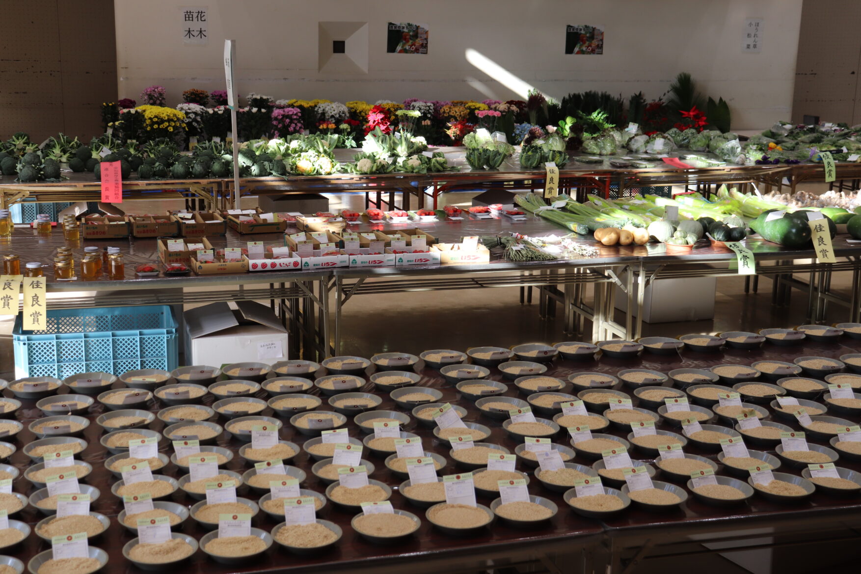 品評会は県内の農業振興を目的に毎年開かれ、県全域から1,917点の農林畜産物が出品。審査の結果、特賞2点、優秀賞46点を含む311点が受賞し、管内からは5点が優秀賞、23点が入賞を果たしました。