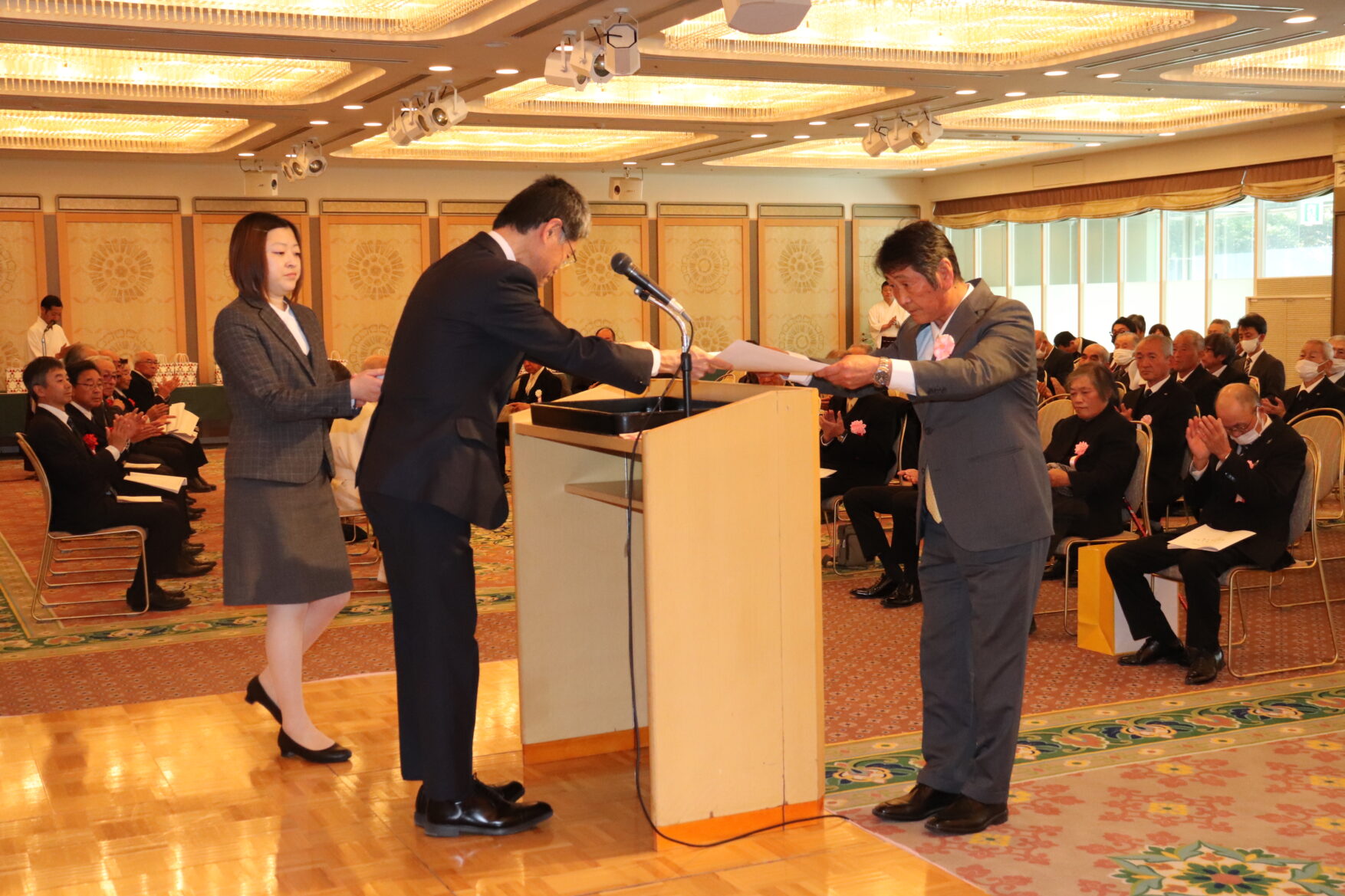 JA愛知中央会と熱田神宮豊年講は12月19日、熱田神宮で第44回熱田神宮農業功労者顕彰式並びに第73回農林畜産物品評会表彰式を開きました。